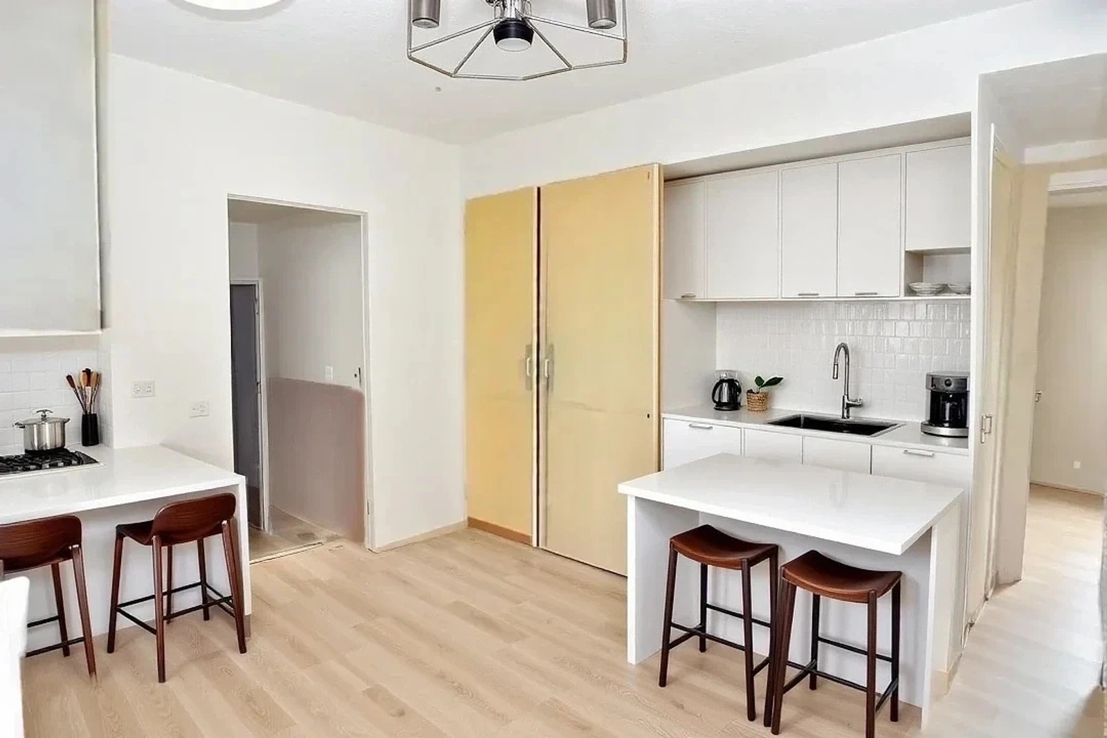 Salon, Séjour, cuisine, une chambre, une salle d'eau et toilettes.